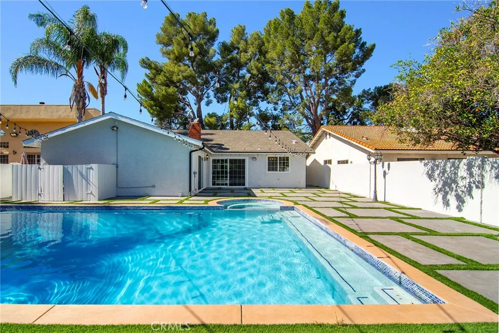 An incredible "South of the Blvd" lease opportunity on this gated single-level showplace. A most spectacular Pine welcomes your arrival & stands guard over the residence. Large pavered drive accommodates parking for plenty. Inside this light & bright home, gorgeous flooring, vaulted ceilings & fresh paint set the stage. Entertain in the large living room with fireplace & family room with fireplace & wet-bar. Open & bright kitchen affords beautiful cabinetry & a selection fine appliances, including a professional grade Thermador stove/oven. Your primary suite features A-framed ceilings, large walk-in closet & a luxurious bath with a soothing soaking tub & a tranquil rain-head shower. Three additional bedrooms, stunning hall bath, additional powder bath, interior laundry with machines included & a Tesla car charger further enhance. Outside, beautiful rear grounds adorned with fruit trees await. Refreshing pool & spa surrounded by distinct concrete decking will impress. Just a half block to the Blvd & all the shops & eateries it has to offer. Sought-after schools too....Don't miss!