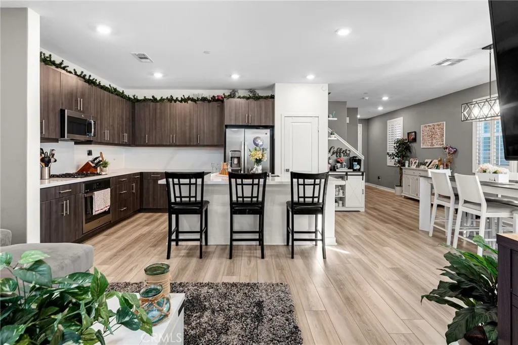 Welcome to this beautifully designed home located in one of Fontanas most desirable communities. Thoughtfully laid out for comfort and functionality, this spacious residence offers 4 bedrooms and 3 full bathrooms, including a convenient first-floor bedroom and bath, perfect for guests, in-laws, or a home office. Step inside to an open-concept floor plan featuring a bright and inviting living space that flows seamlessly into the modern kitchen with a center island, ideal for entertaining and everyday living. Natural light fills the home throughout, enhancing the sense of space and warmth. Upstairs, youll find a generous loft, perfect for movie nights, a play area, or a second family room for gatherings. The laundry room is conveniently located on the second floor, making daily living even easier. All bedrooms are well-sized, but the primary suite truly stands out - large enough to accommodate a private sitting area or office space. The primary bathroom features both a soaking tub and separate shower, along with a spacious walk-in closet. Additional highlights include FULLY PAID-OFF solar panels, offering energy efficiency and long-term savings. This home offers the perfect blend of space, comfort, and functionality for todays lifestyle. Dont miss the opportunity to own this exceptional home in Fontana!