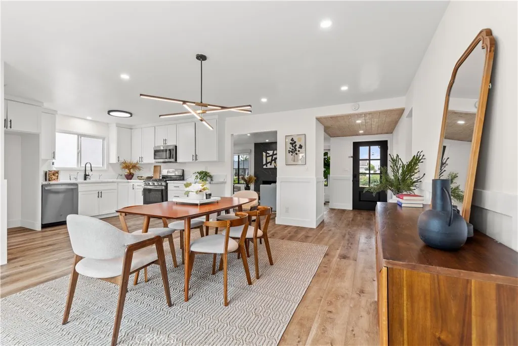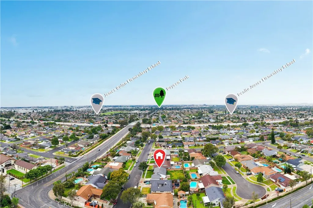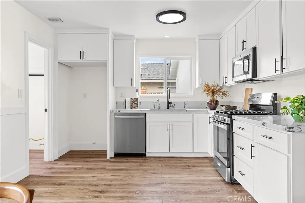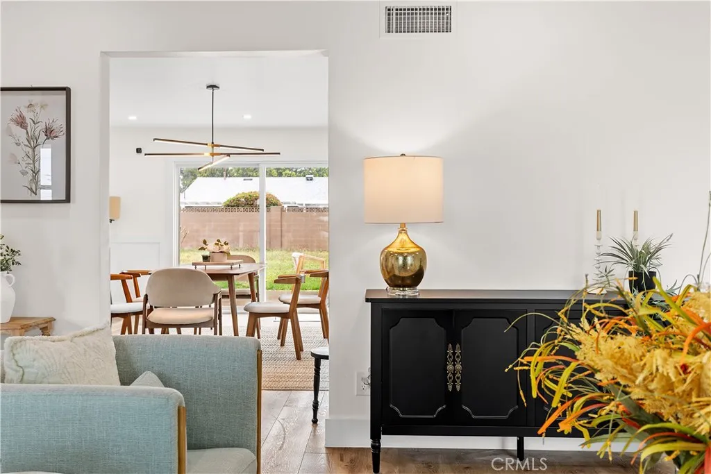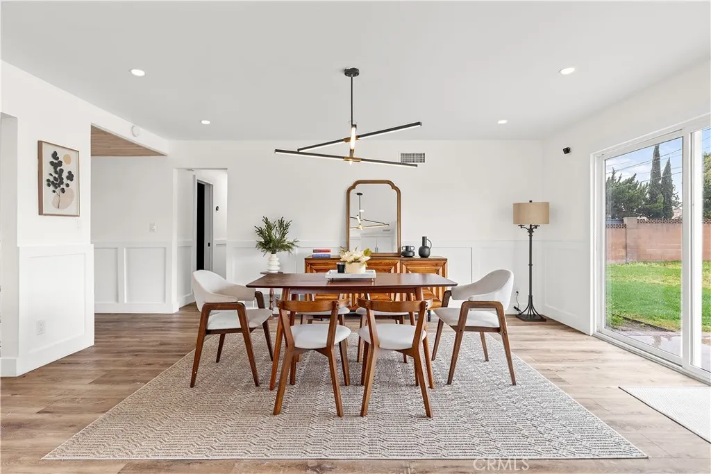 Discover this impeccably updated single-story residence, thoughtfully positioned on a generous 9,200 sq ft lot in a highly desirable Anaheim neighborhood. Spanning approximately 1,618 sq ft, the home offers 3 bedrooms and 2 bathrooms, seamlessly combining contemporary upgrades with exceptional potential for future expansionincluding strong ADU and SB 9 opportunities (buyer to verify all zoning and regulations). Step inside to find elegant vinyl plank flooring throughout the main living areas, complemented by plush carpeting in the bedrooms. The open-concept living and dining spaces are bathed in natural light, accentuated by recessed lighting and a striking modern chandelier that serves as a sophisticated focal point. The fully remodeled kitchen is a chefs delight, featuring crisp white shaker-style cabinetry, durable quartz countertops, premium stainless steel appliances, and sleek contemporary hardware. The primary suite includes dual closets and a ceiling fan with integrated lighting, while the secondary bedrooms are well-proportioned and equipped with ceiling fans featuring lights. Additional comforts include custom window shades throughout for enhanced privacy and energy efficiency. Notable recent upgrades encompass a tankless water heater, a whole-home water softener system, a Tesla charging station, and updated designer lighting fixtures. The expansive backyard offers abundant space for outdoor entertaining, a future pool, or accessory dwelling unit development under applicable SB 9 guidelinesproviding significant long-term value and flexibility. Perfectly situated j