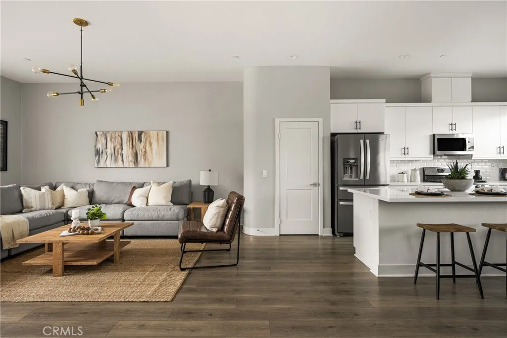 Turnkey Modern Townhome in the heart of Anaheims Platinum Triangle featuring 3 Bedrooms plus a Den, a PRIVATE ROOFTOP DECK, and a direct-access 2-car garage. Ideal for a first-time buyer or investor, with strong rental potential of approximately $4,300 per month. Tucked toward the back of the community, the home offers enhanced privacy in a prime location. The thoughtfully designed floor plan begins with a Den and Powder Room upon entry, providing flexible space for a Home Office, Gym, or sitting area. The Second Level showcases an expansive, light-filled Great Room with high ceilings and walls of windows that flood the space with natural light. The open Chefs Kitchen is designed for entertaining and features white shaker cabinetry, quartz countertops, a white subway tile backsplash, stainless steel appliances, and an oversized island that flows seamlessly into the Dining Area and Great Room. The Third Level offers 3 generously sized bedrooms, including a luxurious Primary Suite with a spa-inspired bathroom, dual vanities, walk-in shower, and a large walk-in closet. secondary bedrooms are thoughtfully positioned at the opposite end of the hall and share a spacious guest bathroom with a soaking tub. Laundry is conveniently located on this level. Escape to the Oversized Private Rooftop Deck to enjoy stunning City and Pool Views. Perfect for relaxing, entertaining, and stargazing, this space truly elevates the home. Energy-efficient features include EV charging, a tankless water heater, and a dual HVAC system. Located just minutes from Disneyland, the Honda Center, Angels Stad