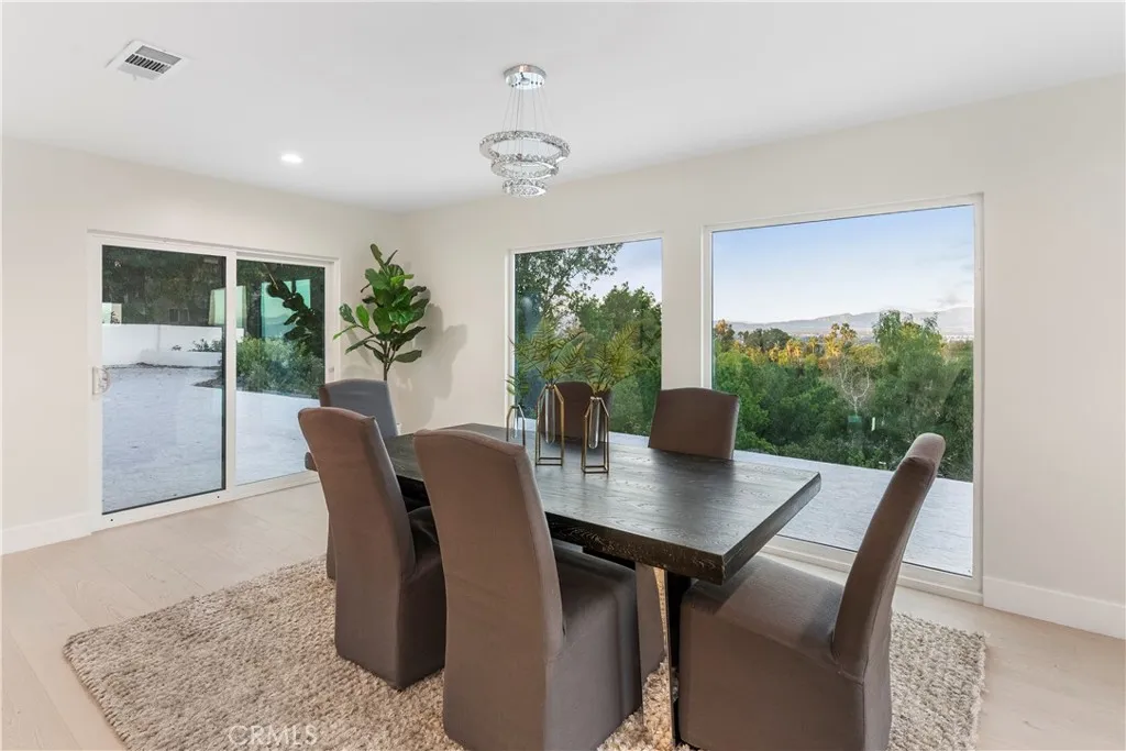 Welcome to 16915 Dormie Pl a stunning single-level gem in premier Encino boasting 5 spacious bedrooms and 3 beautifully appointed baths. Completely transformed for todays modern lifestyle, this home marries effortless indoor/outdoor living with high-end craftsmanship and designer finishes. Step inside to an open, light-filled floor plan featuring brand-new engineered hardwood flooring that flows throughout the home. The remodeled chefs kitchen is a showstopper equipped with top-tier Caf appliances, sleek new countertops, and bespoke cabinetry that elevate every meal. Every corner of the home has been thoughtfully updated, including all new electrical wiring, all-new windows and doors, and designer lighting that creates both warmth and sophistication. Retreat to the luxurious primary suite or any of the four additional bedrooms, each offering comfort and style. The three fully renovated bathrooms feature modern fixtures and finishes with a spa-like feel. Outside, the entertainers backyard is a true California paradise newly landscaped for low-maintenance enjoyment and complete with a refreshed pool with a new pump ready for endless relaxation and gatherings under the sun or stars. Additional upgrades include a brand-new roof and premium finishes throughout this is modern luxury living at its best. Located in one of Encinos most desirable pockets, this home is the perfect blend of style, comfort, and convenience. Dont miss your chance to own this turnkey, beautifully remodeled retreat!