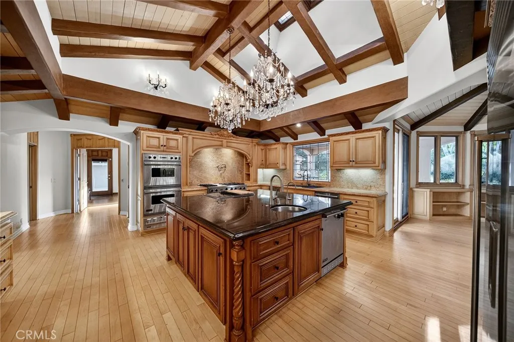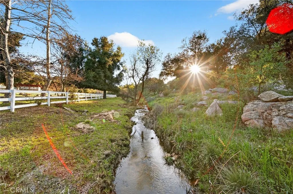 Nestled in the coveted La Cresta Highlands community of Murrieta, this extraordinary 4.9-acre estate backs directly to the Cleveland National Forest and is surrounded by multi-million-dollar properties, offering unmatched privacy, serenity, and panoramic natural beauty! The main residence showcases 5 bedrooms and 4 baths, highlighted by a stunning grand room with soaring ceilings, exposed wood beams, a natural wood-burning fireplace, and a full-size wet barseamlessly opening to a true backyard oasis. Designed for entertaining, the resort-style pool and spa feature a custom slide, creating the ultimate gathering space for family and friends! A chefs kitchen impresses with granite countertops, custom cabinetry, and high-end Viking stainless steel appliances. The spacious primary suite offers a cozy sitting area, fireplace, and picturesque views overlooking the pool and spa. Additional interior features include an upstairs bonus room, a richly appointed library with built-in custom cabinetry, and a large game room with its own wet bar and vaulted wood-beam ceilingsdemonstrating quality craftsmanship throughout! The property also includes a turnkey 2-bedroom, 2-bath guest house, plus a separate 500 sq. ft. 1-bedroom, 1-bath casitaideal for multi-generational living or extended guests. Car enthusiasts and hobbyists will appreciate the impressive 1,500 sq. ft. detached 6-car garage/workshop! A double-gated circular driveway leads to park-like grounds studded with mature oak trees and a natural creek that runs along the back of the property. Equestrian-ready with corrals, shelters