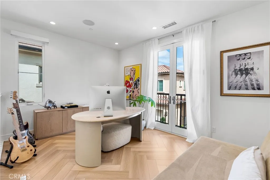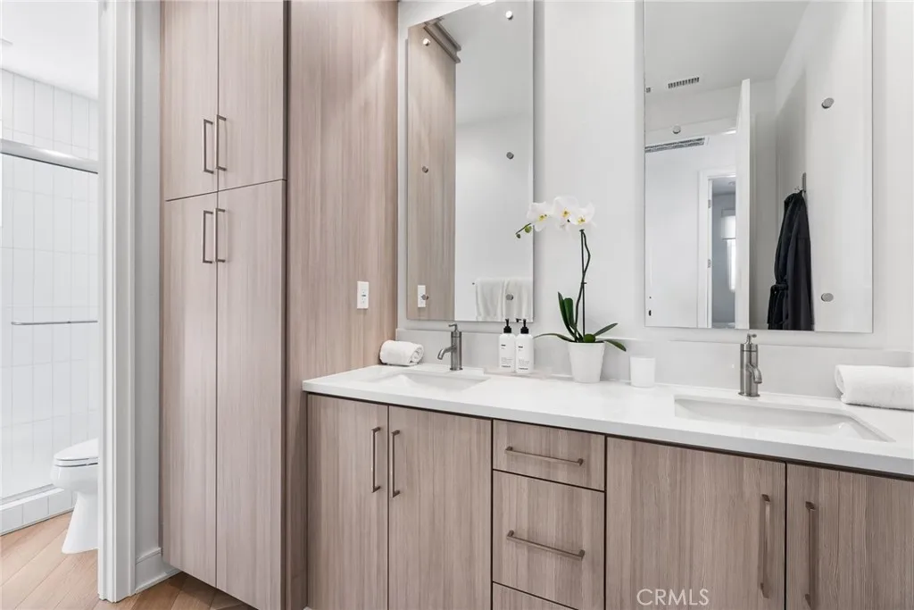 Experience sophisticated urban living in this stunning contemporary gem located in the exclusive gated community of Barcelona at Los Olivos. This meticulously maintained, unfurnished residence offers 2 spacious bedrooms, 2.5 bathrooms, and a versatile upstairs loft perfect for a home office or media retreat. Spanning 1,890 sq. ft., the open-concept floor plan is bathed in natural light, featuring high ceilings and seamless indoor-outdoor flow. The gourmet kitchen boasts high-end stainless steel appliances, premium quartz countertops, and sleek cabinetry. Retreat to the primary suite, which features a spa-like bath with a soaking tub, separate shower, and a custom-finished walk-in closet. The private backyard is an entertainers dream, finished with elegant travertine hardscape and lush, mature landscaping. Additional features include a 2-car garage with epoxy flooring and custom built-ins, laundry room, and access to world-class community amenities including a sparkling pool and manicured grounds. Located just minutes from the Irvine Spectrum Center, Great Park, and top-tier Irvine Unified schools.