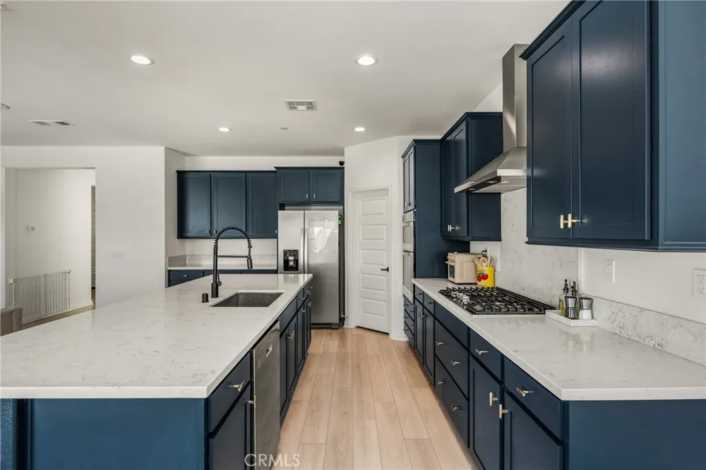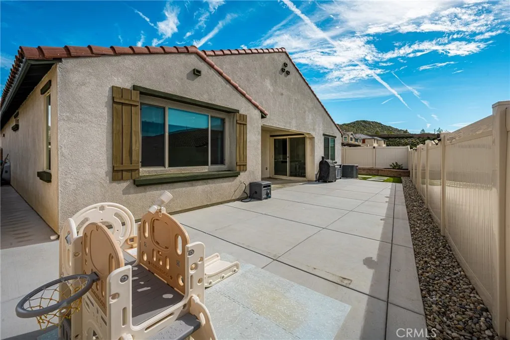 Proudly offered for the very first time, this beautifully upgraded single-story home is located in one of Menifees most sought-after neighborhoods. Purchased as a new build and thoughtfully enhanced with high-end custom features throughout, this residence offers modern comfort, functionality, and turnkey appeal as well as paid for solar and equipped with Tesla charging. Spanning approximately 2,311 square feet, this spacious layout includes 3 bedrooms, 3 bathrooms, and a versatile bonus roomperfect for a home office, media room, gym, or optional fourth bedroom. At the heart of the home is a stunning open-concept kitchen designed for both everyday living and entertaining. Featuring a massive quartz island, all quartz countertops, abundant cabinetry, and a generous walk-in pantry, the kitchen seamlessly opens to the expansive living room, creating an ideal gathering space filled with natural light. The primary suite offers privacy and comfort, while secondary bedrooms are well-sized and thoughtfully positioned for family or guests. Step outside to a fully upgraded backyard retreat, complete with brand-new concrete hardscape and premium turfdesigned for low maintenance and year-round enjoyment. Whether hosting friends or enjoying a quiet evening outdoors, this space is ready to impress.