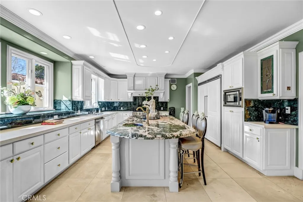 Situated on a prestigious street in prime San Marino, this Italian Renaissance estate showcases an exceptional blend of classic architecture and modern luxury living. Originally built in 1927, rebuilt in 1998, and extensively remodeled in 2016, the residence offers timeless elegance set amidst beautifully landscaped, resort-style grounds. The main residence features 4 bedrooms and 5 bathrooms. A thoughtfully designed floor plan includes a private bedroom suite on the main level, ideal for guests or multigenerational living. Upstairs, the luxurious primary suite offers a private sitting area, spa-inspired bath, and an expansive walk-in closet. Two additional junior suites provide comfort, privacy, and refined accommodations. A grand foyer with soaring ceilings introduces light-filled formal living spaces. The expansive living room is highlighted by an exquisite cloisonn style chandelier, serving as a striking artistic centerpiece that enhances the homes refined character. A sophisticated office and an inviting family room offer elegant yet comfortable gathering spaces. The family room extends to a spacious terrace, creating effortless indoor-outdoor flow for entertaining, al fresco dining, or enjoying serene garden views. The chefs kitchen is appointed with premium appliances, custom cabinetry, and a substantial marble island designed for both daily living and elevated entertaining. Enhancing the estate is a separate 444 sq. ft. pool house complete with its own bathroom, ideal for guests, extended family, or private entertaining. An additional garage bay has been thoughtfull