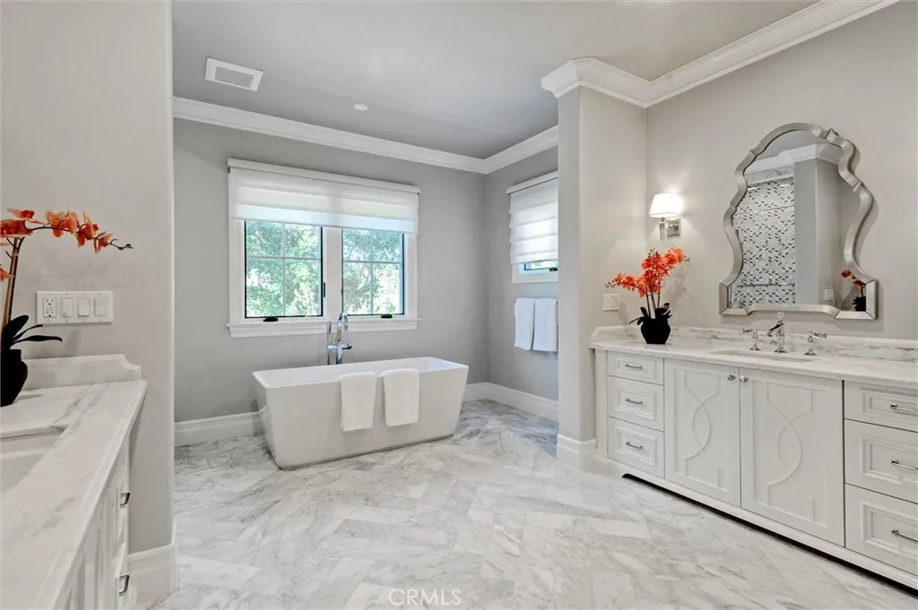 This luxurious, modern, and sophisticated south-facing estate, designed by the renowned Atelier & Design and constructed by Bluth Construction Company, is a true masterpiece. Situated on a generous 15,160 square foot lot, the property boasts 6 bedrooms and 6.5 bathrooms. Upon entering, you'll be welcomed by a stunning marble foyer that flows into a formal living room and dining room on one side, and a study/library and theater on the other. The open floor plan kitchen features high-end stainless steel appliances, a large island, a wok kitchen, and a pantry. A double glass-door wine cellar is conveniently located in the family room. Each of the 6 bedrooms comes with en-suite bathrooms, while the beautiful and spacious primary suite offers a luxurious tub, a separate steam shower, and a walk-in closet. The private and serene backyard is perfect for entertaining, featuring a lovely pool with a soothing spa and a patio designed for hosting gatheringsproviding the ultimate in relaxation and entertainment. Located conveniently near the library, parks, shopping, and the award-winning Arcadia School District, this home presents a rare opportunity that you won't want to miss! It's a must-see property!