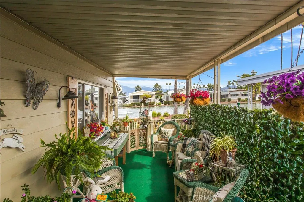 Welcome to The Lakes at Hemet West, one of Southern California's most beautiful 55+ manufactured home gated communities. This charming 2 bedroom, 2 bathroom home is a move-in ready residence featuring a newer roof, stainless steel appliances, butcher block kitchen countertops, kitchen tile flooring, and wood flooring throughout the rest of the home. Enjoy beautiful lake views from nearly every room and relax on the wrap-around porch overlooking the peaceful surroundings. This home offers plenty of comfortable living spaces including a living room, separate family room, dining room, a convenient indoor laundry room, and plenty of natural light. Residents of The Lakes at Hemet West enjoy resort-style amenities including a 9-hole par three executive golf course, putting greens, heated Jr. Olympic pool and jacuzzi, pickleball and bocce ball courts, shuffleboard, horseshoes, private dog park, covered barbeque area overlooking the water and so much more! This clean, turn-key home is the perfect opportunity to enjoy resort-style living in a peaceful lakeside setting. Schedule your showing today!