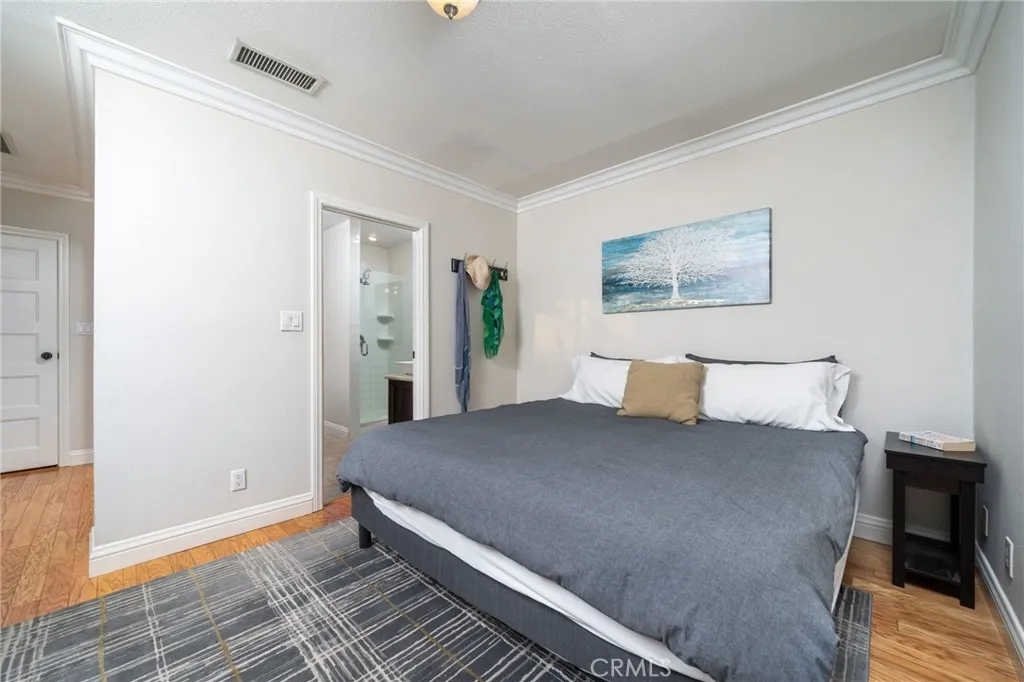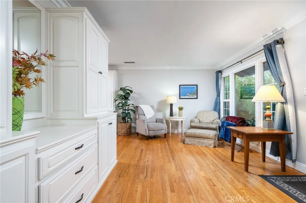 Located on a quiet cul-de-sac in the heart of Upland, this beautifully updated single-story residence blends timeless character with thoughtfully designed indoor-outdoor living. The front yard showcases manicured drought-tolerant landscaping and mature vegetation, creating a welcoming first impression and strong curb appeal. Inside, warm hardwood floors and abundant natural light fill the open living spaces, while expansive windows frame views of the homes lush garden greenery and citrus trees. Custom built-ins add both charm and functionality, providing elegant storage and workspace throughout the living areas. The kitchen flows naturally into the dining and living spaces, creating a comfortable layout well-suited for both everyday living and entertaining. Three well-proportioned guest bedrooms are situated toward the front of the home and share a beautifully remodeled hall bathroom. The primary suite offers a peaceful retreat and features a recently updated en-suite bathroom with a walk-in shower. Designed for relaxation and entertaining, the backyard feels like a private garden sanctuary. French doors open to a spacious covered patio, creating effortless indoor-outdoor living and a shaded space for gathering. Just beyond, a generous wood deck offers the perfect setting for outdoor dining beneath caf lights, surrounded by mature landscaping, flowering vines, and winding garden paths. Tucked among the greenery, a private spa provides a tranquil place to unwind. Additional highlights include a newer roof, dual water heaters, and a backyard bocce ball court, completing this