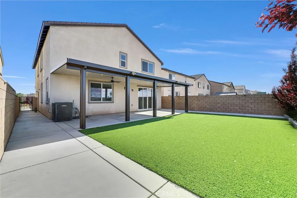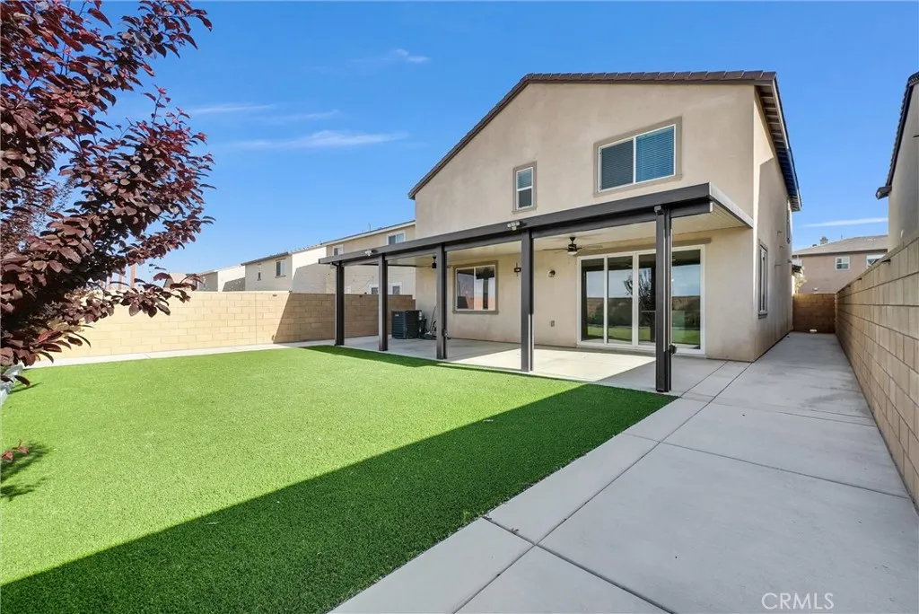 Welcome to this beautifully upgraded 2023-built home in Hesperia, offering 4 bedrooms, 3 bathrooms, and approximately 2,626 sq ft of modern living space. Designed with an open-concept layout, the home features a stylish kitchen with quartz countertops, white shaker cabinets, a large island, and sleek finishes that flow seamlessly into the living and dining areasperfect for entertaining. The main floor includes a bedroom and full bath ideal for guests or multi-generational living, while upstairs boasts a spacious loft, convenient laundry room, and a generous primary suite with dual vanities and a walk-in closet. Step outside to a private backyard with block wall fencing, covered patio with ceiling fans, and low-maintenance turf. Additional highlights include a 2-car garage, energy-efficient features including solar, and a prime location near schools, parks, and commuter routes.