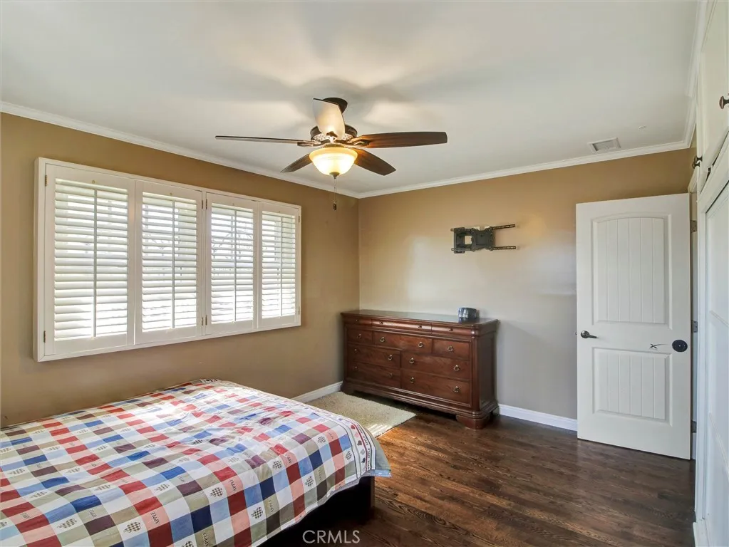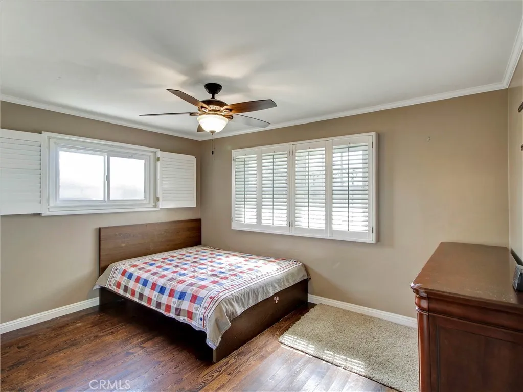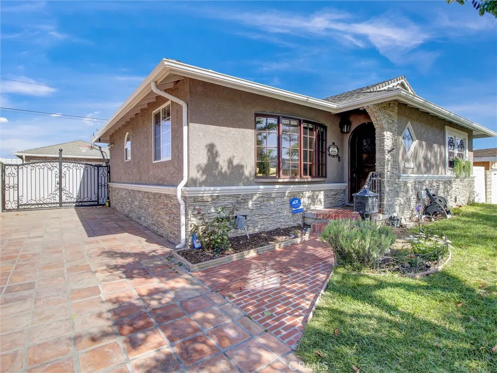 This stunning West-facing Southwood home offers a perfect blend of style, comfort, and functionality. Featuring eye-catching stacked stone accents and a terracotta tile driveway, the home welcomes you through an elegant arched entry into a bright living and dining area complete with hardwood floors and a built-in wet barideal for entertaining. The fully remodeled kitchen is designed for modern living, showcasing premium Thermador appliances, quartz countertops, under-cabinet lighting, self-closing cabinetry, and a skylight that fills the space with natural light. A breakfast bar and center island open seamlessly into the spacious family room, highlighted by a limestone fireplace and sliding glass doors leading to the backyard. The home offers a flexible layout with well-appointed bedrooms. The rear bedroom features a bay window, plantation shutters, built-in bookshelves, and a deskperfect for a home office setup. The primary suite includes an updated en-suite bathroom, generous closet space, and plantation shutters. An additional hallway bathroom has also been tastefully remodeled. Upstairs, a large bedroom with a beautiful bay window and newer carpet provides added versatility. Additional upgrades include solid core interior doors, hardwood flooring throughout, dual-pane windows, recessed lighting, crown molding, central A/C, a tankless water heater, and fresh interior paint. The oversized detached garage is fully finished with drywall, epoxy flooring, built-in storage, a pull-down attic ladder, and washer/dryer hookups. The private backyard features mature fruit trees (ap