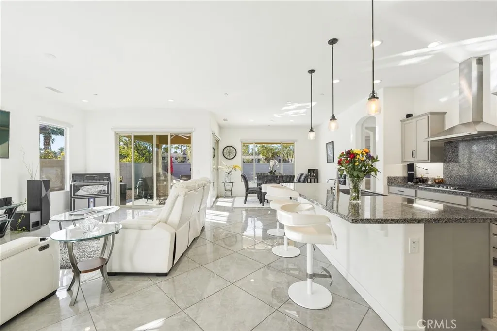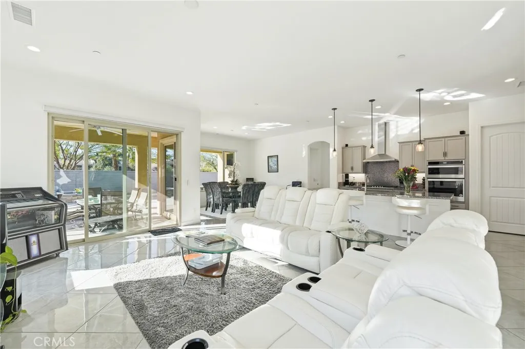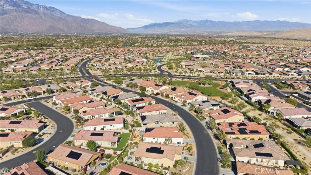 This 2-bed home in Rancho Mirage at Del Webb offers refined desert living with a private pool and spa, mountain views, and upgraded interiors, all within a premier 55+ gated community known for its resort-style amenities and active lifestyle. Welcome to 61 Cabernet in Del Webb Rancho Mirage. This 2-bedroom, 2-bath residence features a thoughtfully designed open-concept layout with seamless flow between the great room, dining area, and kitchen, creating a comfortable and functional living environment. The kitchen is well-appointed with granite countertops, upgraded cabinetry, a spacious peninsula with seating, and a walk-in pantry, offering both convenience and connection to the main living space. Interior highlights include porcelain tile flooring, custom window treatments, ceiling fans, and a built-in surround sound system in the great room. The primary suite includes a spacious walk-in closet and an ensuite bath with dual vanities and a glass-enclosed shower. The guest bedroom is positioned on the opposite side of the home, providing privacy with easy access to a nearby full bathroom. A dedicated laundry room with washer and dryer, leased solar, and a 2-car garage add to the homes functionality. The outdoor space is designed for everyday enjoyment, featuring a covered patio, private pool and spa, built-in speakers, and mountain views. The yard offers a peaceful setting for relaxing or entertaining. Del Webb Rancho Mirage provides access to a clubhouse, resort-style pool and spa, fitness center, tennis courts, pickleball courts, bocce ball, and a variety of social activiti
