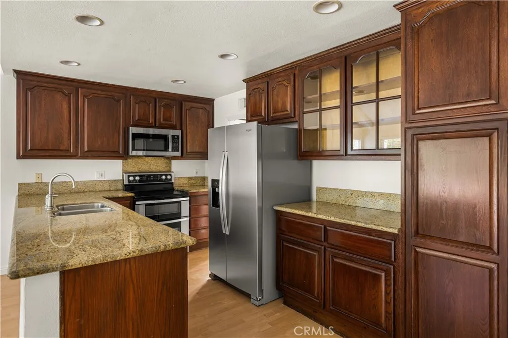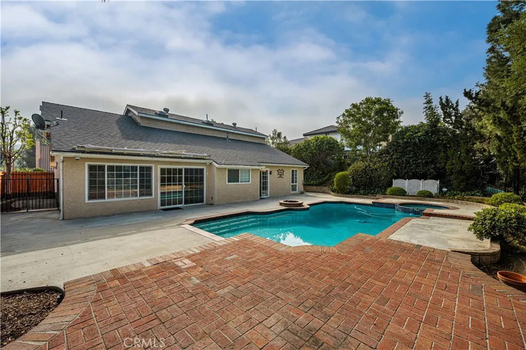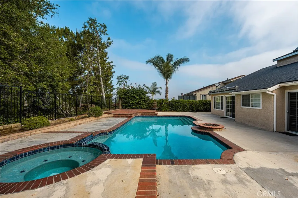 Welcome to 257 S. Hillcrest St. in Anaheim Hills, a beautifully maintained two-story home located in the highly desirable Woodcrest Estates community. This spacious residence offers five bedrooms and three bathrooms, featuring an open and inviting floor plan designed for comfortable living and entertaining. Inside, you'll find a blend of elegance and functionality with laminate flooring and plush carpeting upstairs throughout. The home features a step-down formal living room and dining room, soaring cathedral ceilings, and a remodeled kitchen equipped with granite countertops, stainless steel appliances, and rich dark wood cabinetry. The first level features three bedrooms and two bathrooms, offering convenient single-level living. The home has been freshly painted throughout, creating a bright and updated feel. The primary bathroom shower has been recently remodeled with modern finishes. Upstairs, you'll find brand-new carpeting and newly installed ceiling fans, adding comfort and style. The home also includes dual-pane windows throughout, new blinds enhancing energy efficiency and overall comfort. The backyard is a private retreat featuring a sparkling pool and spa, perfectly positioned to take in beautiful views of the surrounding hills and mature trees ideal for relaxing or entertaining in a serene outdoor setting. The Woodcrest community is close to parks, hiking trails, restaurants, shopping, golf and award winning blue ribbon schools