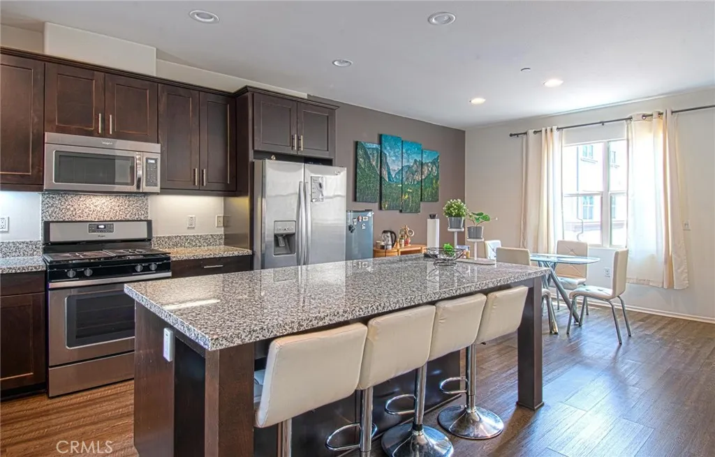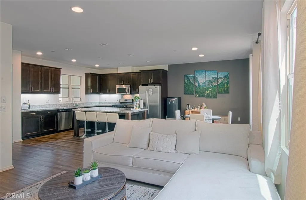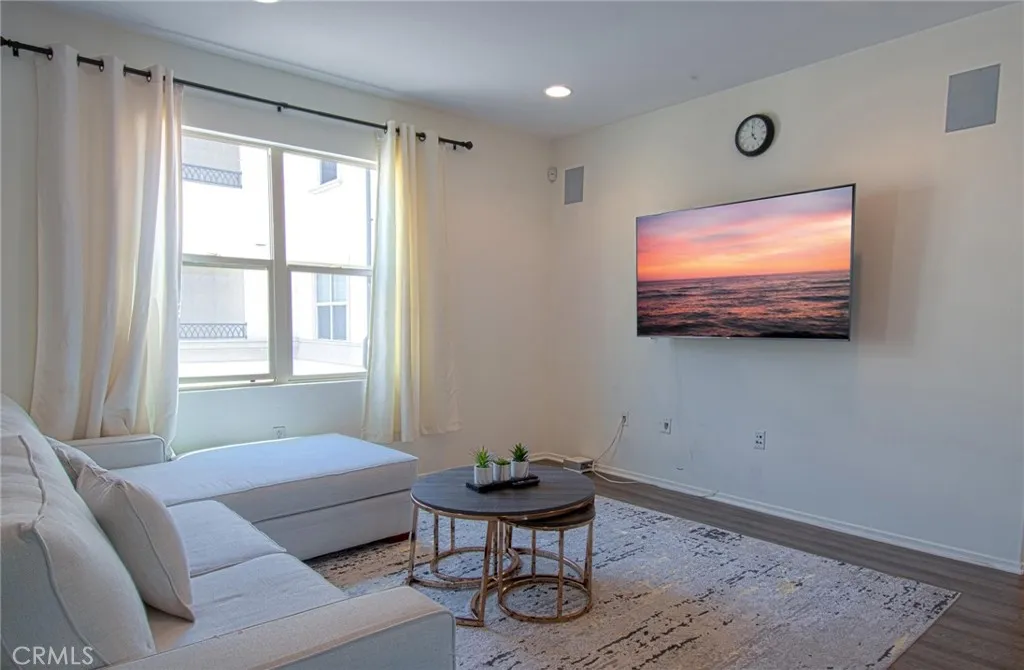 Experience Luxury Urban Living at The Domain! Perfectly situated in the heart of Downtown Anaheim, this contemporary condo offers a resort-style lifestyle just steps from the Anaheim Packing District and Center Street Promenade. This rare unit stands out with a private street-level entrance and a massive 2.5-car oversized garageperfect for a home gym, workshop, or office. The ground-floor foyer leads you up to a stunning, light-filled open floor plan characterized by soaring ceilings, upgraded laminate wood flooring, and fresh paint. The chefs kitchen is a showstopper, featuring premium dark cabinetry, granite countertops, stainless steel appliances, and an expansive island. Modern tech upgrades include built-in speakers and recessed lighting on dimmers to set the perfect mood. Both bedrooms are generously sized, featuring a large en suite and a walk-in closet. Community Amenities Include: Resort-style pool and lounging areas. Outdoor BBQs, fireplace, and social seating. Rooftop Deck with panoramic views of North OC and the mountains. Front-row seats to the nightly Disneyland Fireworks! Walk or take the FRAN shuttle to world-class dining and entertainment. This turnkey gem offers the perfect blend of privacy and urban excitement. Don't miss out! PHOTOS WILL BE UPLOADED BY APRIL 20th