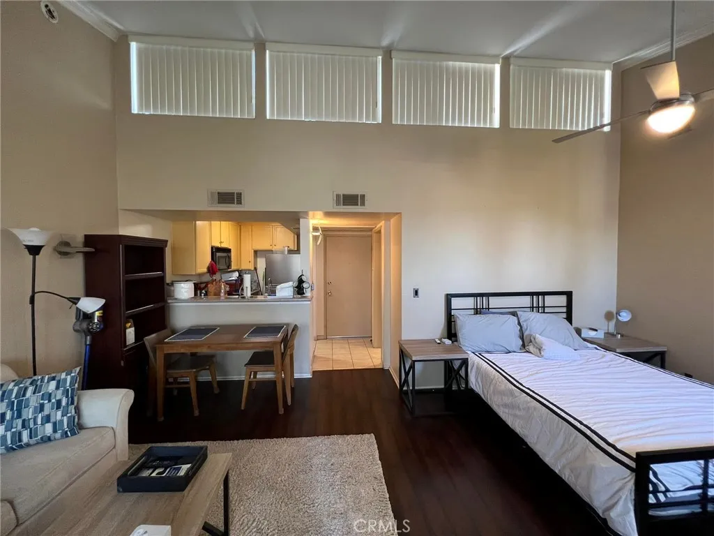 Welcome to a gorgeous studio apartment, steps from Ventura Boulevard shopping and restaurants, and a short walk to Tarzana Medical Center. With hardwood floors, vaulted ceilings, and a gas fireplace, this is a beautiful, top-floor apartment in a prime location. Fully furnished with a queen size bed, couch, dining room table, an oversized reading chair, as well as a smart TV and kitchen essentials. Unit has floor to ceiling windows for afternoon light on a private balcony, and central air and heat fully replaced within the last few years. Just outside the unit there is a gym, pool and BBQ area, laundry room, and community room all within the complex. With a dedicated underground parking spot and the added privacy of being in the back of the complex, this is a great unit to call home. Water, gas, and sewer are all included the renter pays for electricity. A cable modem and router ready to be setup with wireless Spectrum internet service is also included.