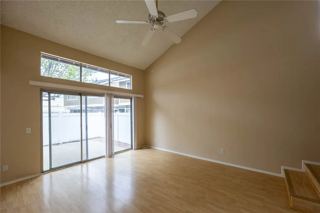 END UINT, only one common wall to neighbors , MOVE IN CONDITION new paint, deep cleaned carpet, Open floor downstair with high ceiling and ceiling fan, two suites upstairs, and one powder room downstairs. Laminate floor in living room, tile floor in kitchen and dining room, direct access to good size enclosed back yard, Attached 2 car garage including laundry space also direct entrance to the living area. Central AC and heater, community pool and SPA, plenty grassy area, close to school, shopping and FWY.