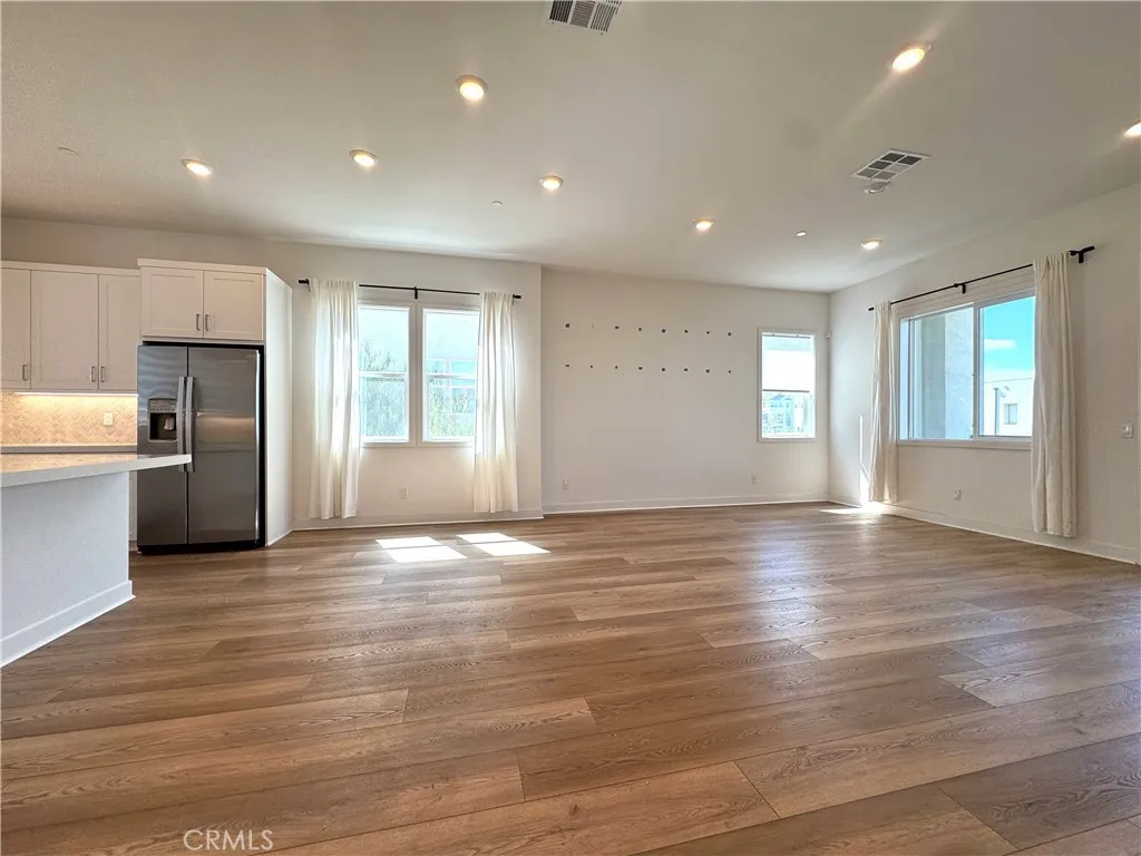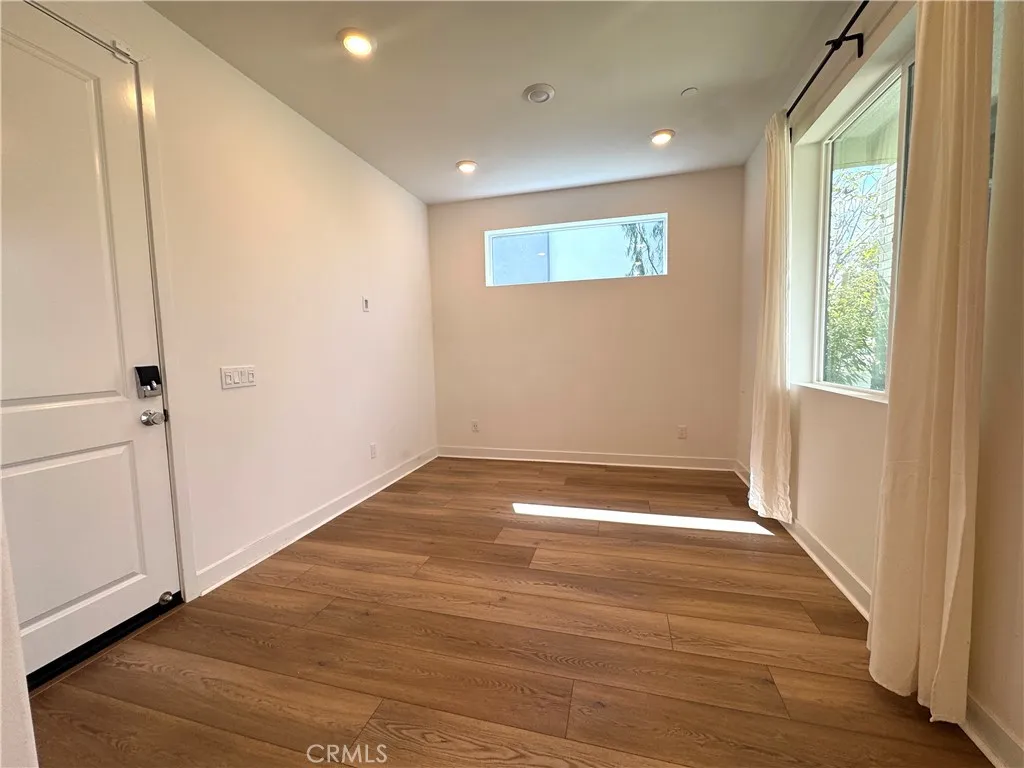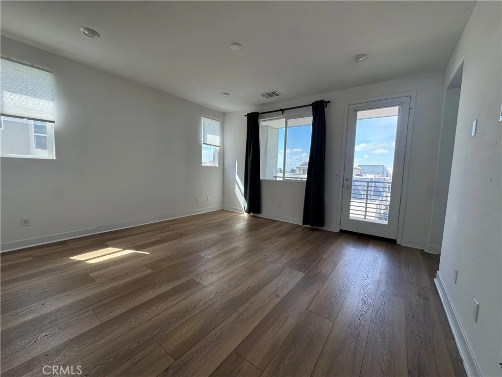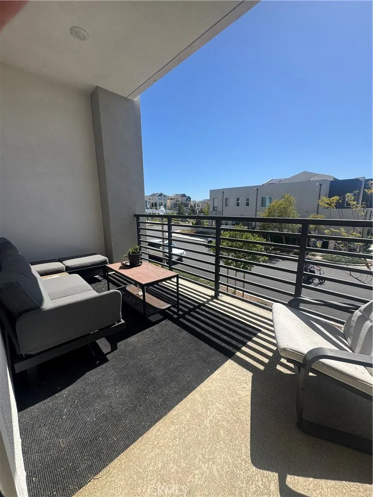 Welcome to this exceptional corner residence in the highly sought-after Solis Park neighborhood of Irvines Orange County Great Park. This beautifully designed home by Lennar offers approximately 1,900 sq. ft. of living space, featuring 2 bedrooms, 2.5 bathrooms, a versatile main-level flex space, and dual private balconies. As a desirable and private corner unit, the home enjoys an abundance of windows that fill the space with natural light, creating a bright, airy atmosphere while maintaining a quiet and comfortable living environment. The open-concept layout on second level provides a seamless flow between the kitchen, dining, and spacious great room ideal for both everyday living and entertaining. At the heart of the home is the expansive chefs kitchen, featuring quartz countertops, a full backsplash, abundant white shaker cabinetry, stainless steel appliances, and a large center island with seating, all opening to the light-filled living area. The third level offers primary and secondary bedrooms each with own bathroom, plus laundry. Meticulously maintained and owner-occupied, the home features wide luxury vinyl plank flooring throughout with no carpet, delivering a clean, modern aesthetic along with durability and easy maintenance. Additional highlights include LED recessed lighting, custom window treatments, and a full suite of stainless-steel appliances all appliances are included. The property is also equipped with owned solar panels, providing energy efficiency and long-term savings. Enjoy resort-style amenities just steps away, including pools, parks, sports cou