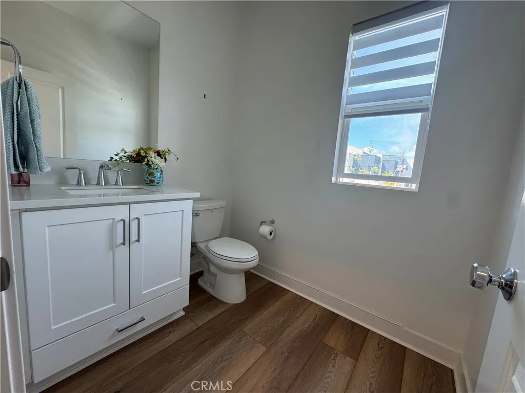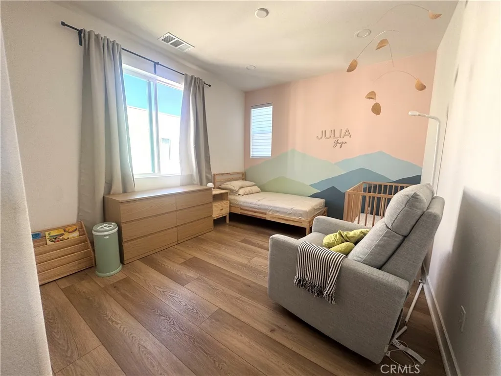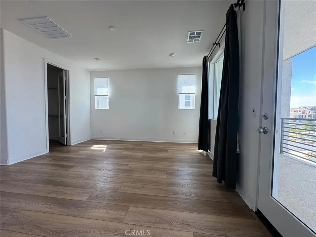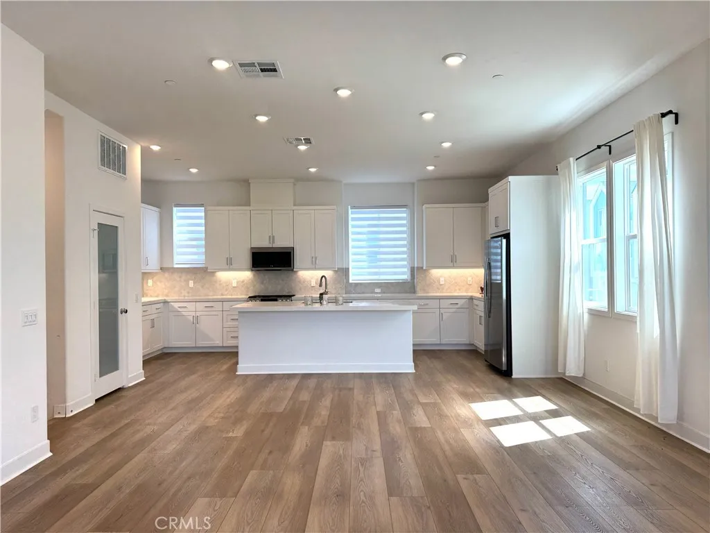 Welcome to this exceptional corner residence in the highly sought-after Solis Park neighborhood of Irvines Orange County Great Park. This beautifully designed home by Lennar offers approximately 1,900 sq. ft. of living space, featuring 2 bedrooms, 2.5 bathrooms, a versatile main-level flex space, and dual private balconies. As a desirable and private corner unit, the home enjoys an abundance of windows that fill the space with natural light, creating a bright, airy atmosphere while maintaining a quiet and comfortable living environment. The open-concept layout on second level provides a seamless flow between the kitchen, dining, and spacious great room ideal for both everyday living and entertaining. At the heart of the home is the expansive chefs kitchen, featuring quartz countertops, a full backsplash, abundant white shaker cabinetry, stainless steel appliances, and a large center island with seating, all opening to the light-filled living area. The third level offers primary and secondary bedrooms each with own bathroom, plus laundry. Meticulously maintained and owner-occupied, the home features wide luxury vinyl plank flooring throughout with no carpet, delivering a clean, modern aesthetic along with durability and easy maintenance. Additional highlights include LED recessed lighting, custom window treatments, and a full suite of stainless-steel appliances all appliances are included. The property is also equipped with owned solar panels, providing energy efficiency and long-term savings. Enjoy resort-style amenities just steps away, including pools, parks, sports cou