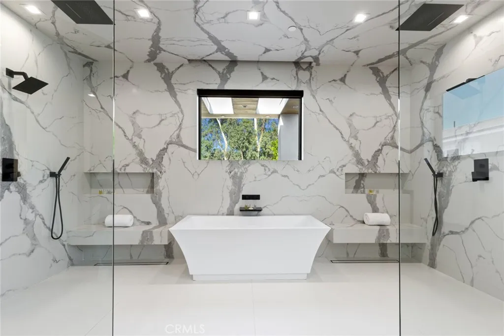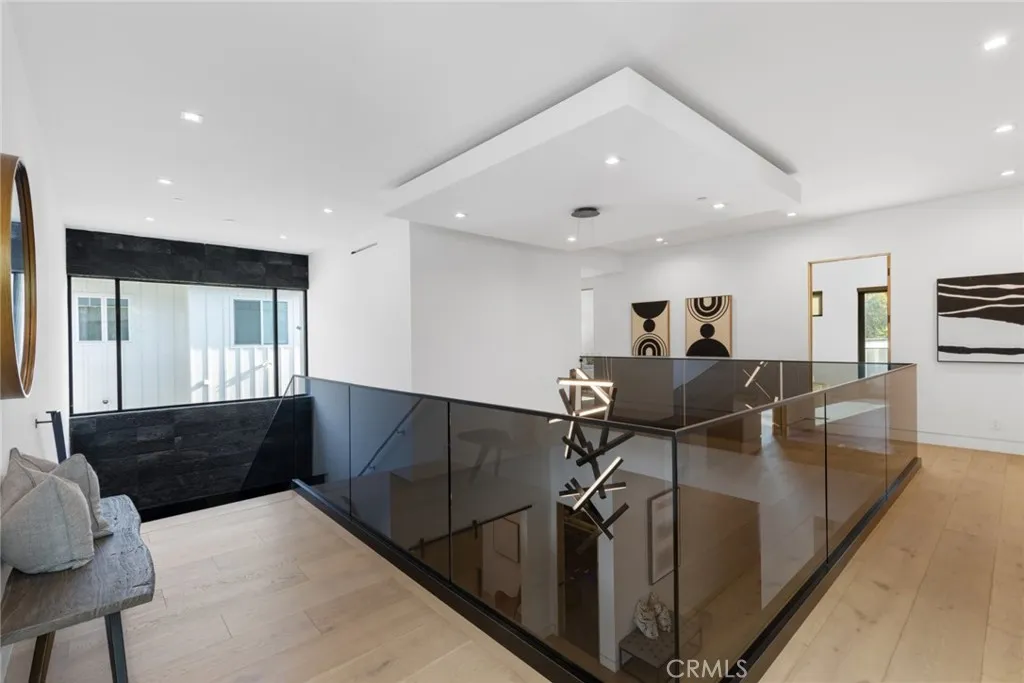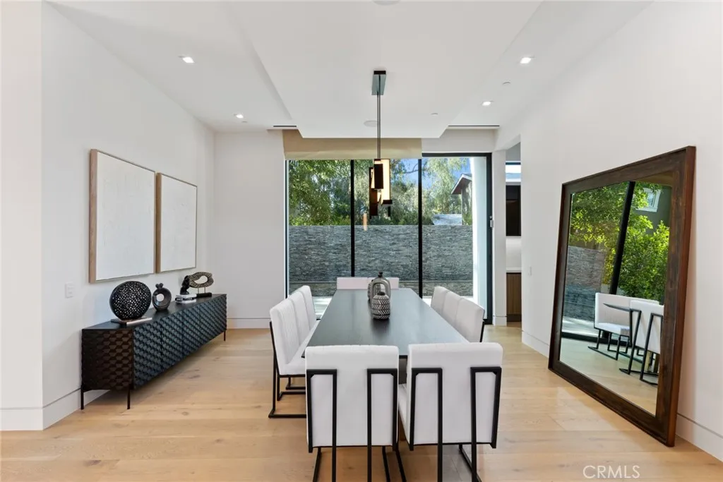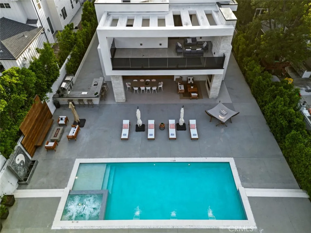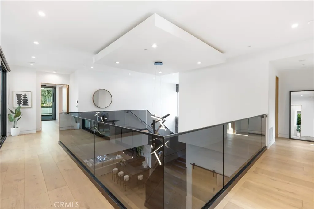 Available furnished for short-term lease (30-day minimum) or long-term tenancy, this extraordinary newly constructed modern estate offers an exceptional blend of architectural sophistication and resort-style living. Privately gated and introduced by a serene courtyard entry, the residence makes an unforgettable first impression with dramatic scale, soaring ceilings, and a beautifully designed open-concept floor plan. Inside, a stunning great room is anchored by a floor-to-ceiling fireplace and flows effortlessly into a magazine-worthy chefs kitchen curated for both everyday living and elegant entertaining. Rich European cabinetry, exquisite stone finishes, an oversized center island, and top-of-the-line Miele appliances including double ovens, microwave, refrigerator/freezer, and a 5-burner range create a kitchen that is as functional as it is luxurious. An adjacent catering kitchen and butlers pantry add an exceptional level of convenience. Spanning over 6,000 square feet, the home features five spacious en-suite bedrooms and impeccable custom finishes throughout. Expansive walls of glass, oversized windows, and disappearing doors flood the interiors with natural light while creating a seamless connection to the outdoors, capturing the essence of California indoor-outdoor living. A sculptural floating staircase leads to the upper level, where a covered terrace with glass accents offers an additional space to relax or entertain. The primary suite is a true sanctuary, evoking the ambiance of a five-star hotel with its own fireplace, private balcony, oversized walk-in close