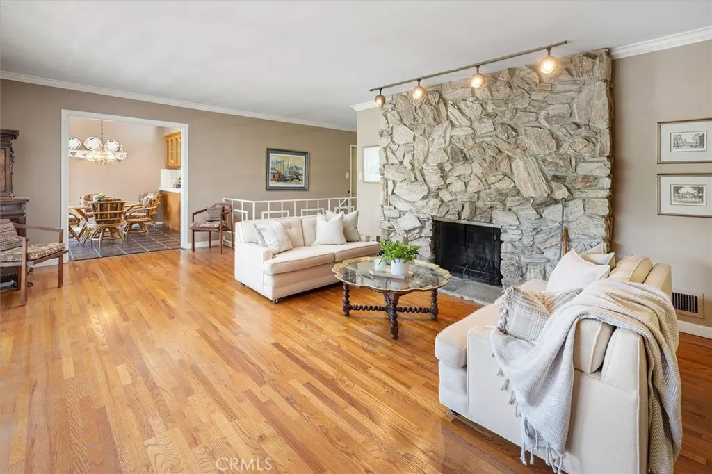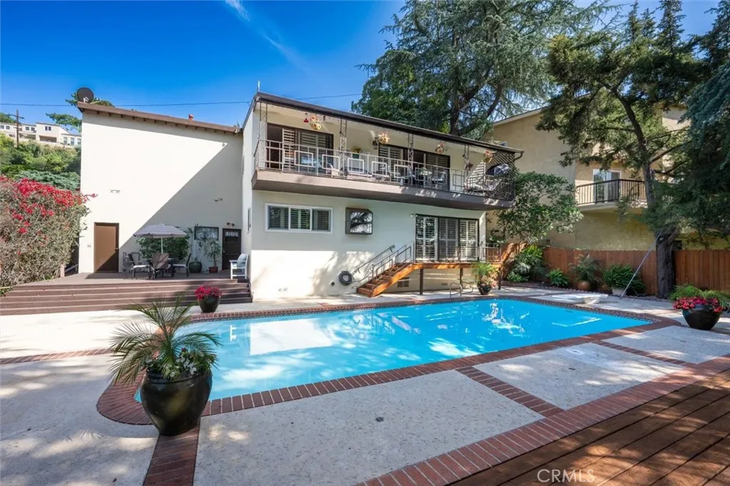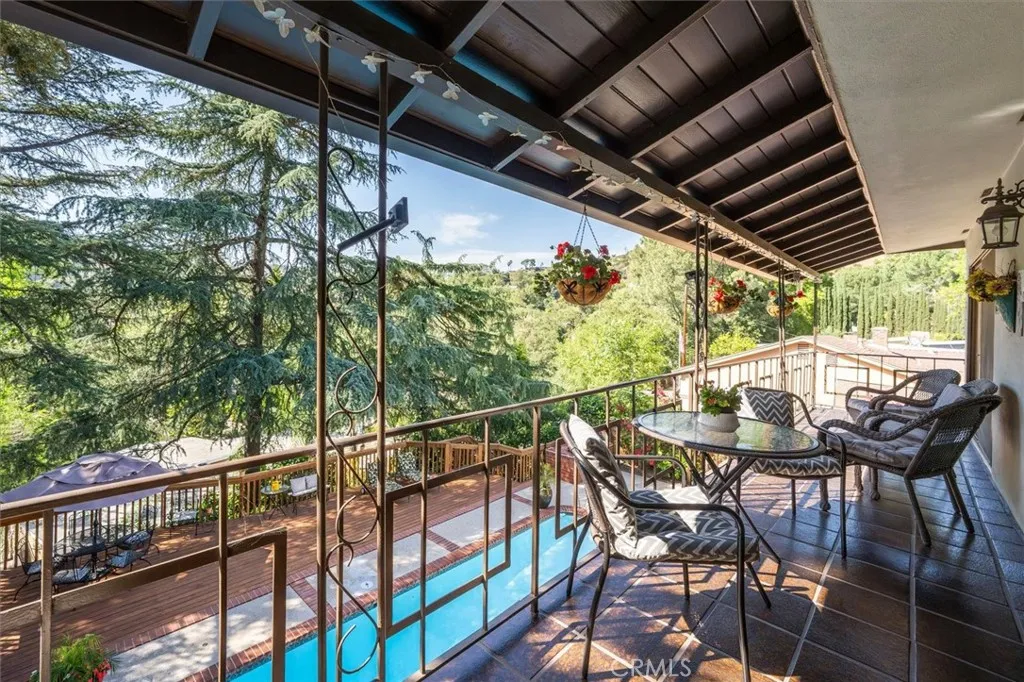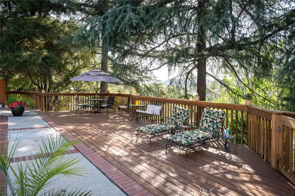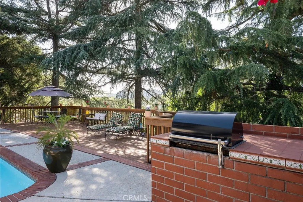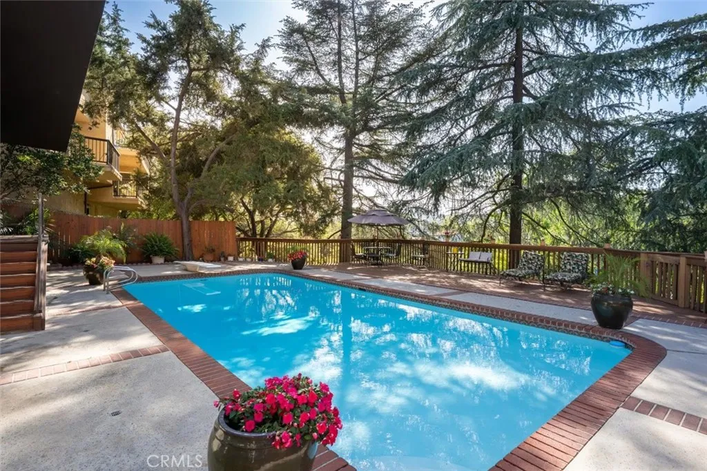 Tucked into the hills of Chevy Chase Canyon, this split-level home features an unbeatable view, an oversized pool set in an entertainer's backyard, a 2-car attached garage, and complete privacy. This home has been in the same family since 1968 and shows the kind of care that only decades of true ownership can provide. Mature trees frame the property, and the views overlooking the Glendale hills set the stage for an outdoor space that is genuinely hard to replicate. The backyard is designed for both privacy and entertaining, with a built-in BBQ, an outdoor dining area, and a brand-new hillside deck rebuilt in 2025. Tall, established landscaping creates seclusion from every angle. Inside, tile and oak flooring run through the split-level layout, with a large stone-faced fireplace anchoring the living room and a second fireplace in the downstairs suite. Multiple large dual sliding glass doors bring natural light and hillside views into the living spaces, and plantation shutters carry through every room. The downstairs bedroom opens directly to the backyard, making it a natural fit for guests or a private workspace. A 2-car attached garage connects directly to the kitchen for everyday convenience. With no HOA and only minutes away from 210 access and highly rated schools, this hillside home is the one you've been waiting for.