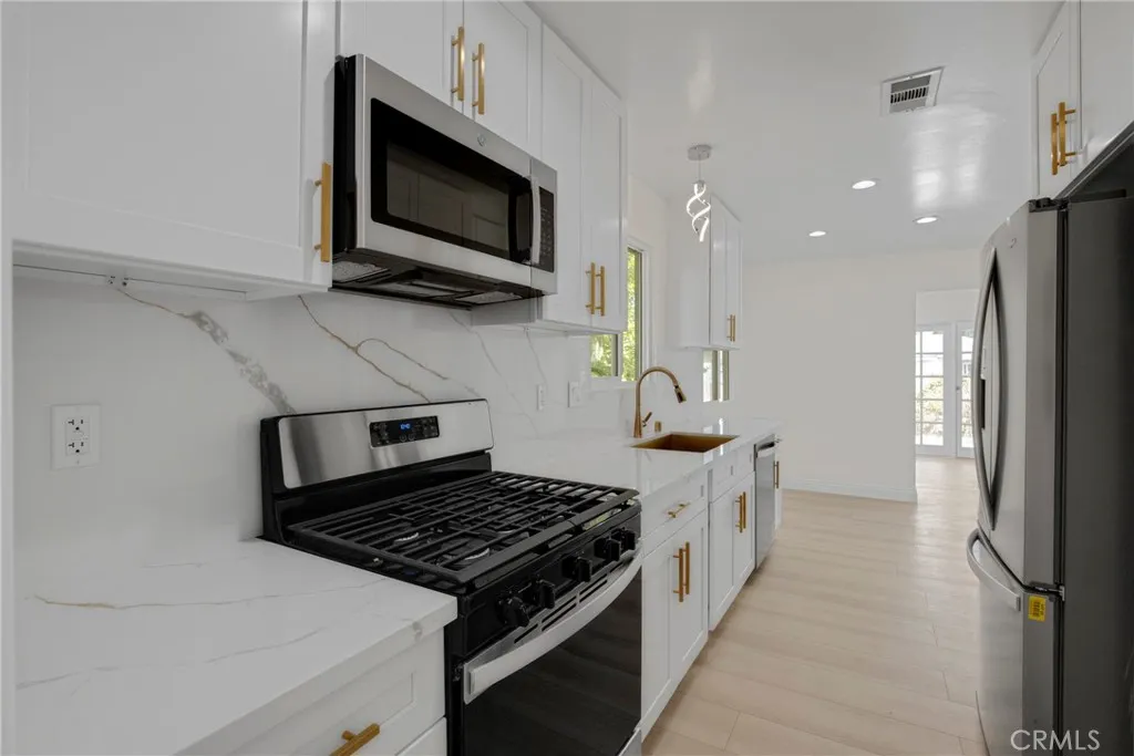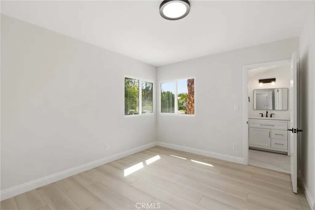 Fully remodeled and move-in-ready 3-bedroom, 2-bath home in prime Tarzana, ideally suited for professionals, corporate housing, or long-term tenants. This beautifully upgraded residence features a bright, open layout with brand-new finishes, fresh paint, and a clean, modern design throughout. The home offers hardwood flooring in the bedrooms, spacious living areas, and updated kitchen and bathrooms designed for both style and functionality. Central air conditioning provides year-round comfort, creating a true turnkey living experience. Private driveway parking is available. Laundry hookups are provided. Please note there is no garage and no in-unit laundry installed. A separate ADU on the property is leased independently, maintaining a private and well-managed environment. Conveniently located just minutes from major hospitals, medical centers, shopping, dining, and freeway access, this home is an excellent option for traveling healthcare professionals, relocation clients, or long-term residents seeking quality living in a highly desirable location.