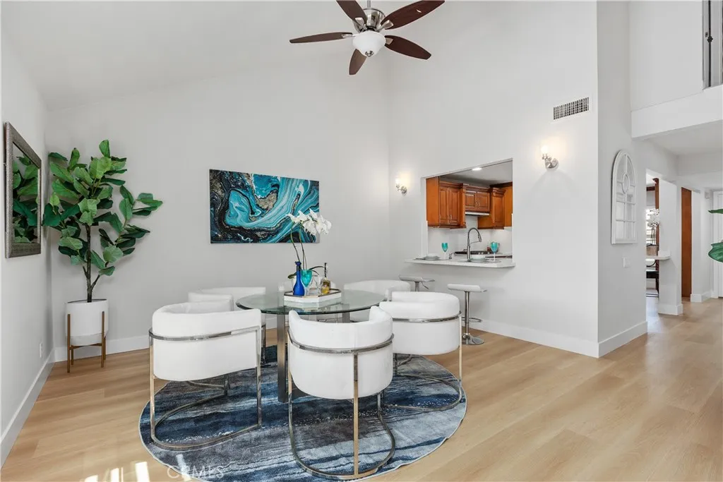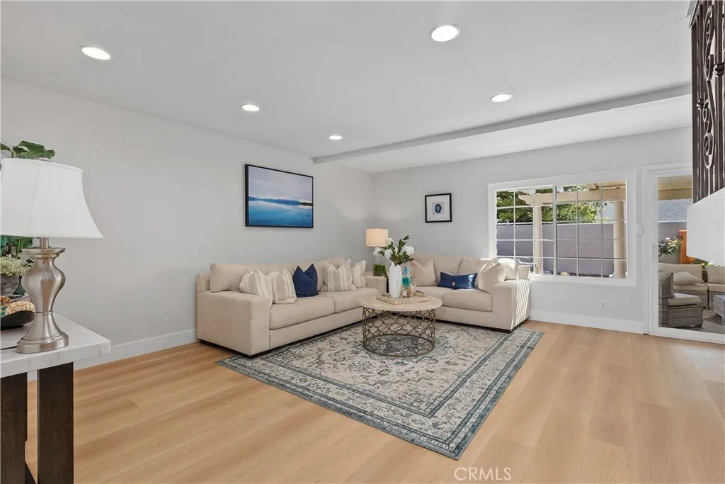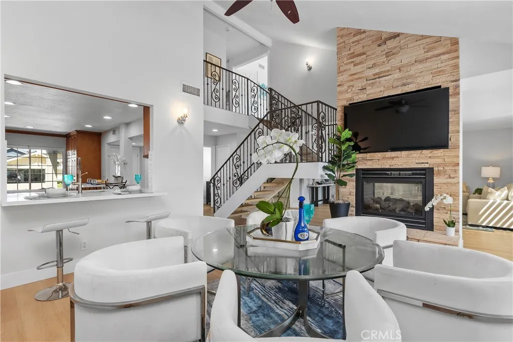 This beautifully upgraded home offers 2,109 sq ft of comfortable living space on a generous 5,000 sq ft lot in a prime Irvine location. Thoughtfully updated and move-in ready, it seamlessly blends modern finishes with a warm, functional layout and best of all, there is no HOA and no Mello-Roos!. The home is within easy walking distance to the elementary school and nearby parks, making daily school runs and family outgoings incredibly convenient. As you enter, youre immediately drawn to the stunning kitchen featuring elegant quartz countertops and a new gas cooktop. The main level also boasts fresh vinyl plank flooring throughout and a bright dinning room with soaring high ceilings and a dramatic see-through fireplace. Upstairs, youll find three generously sized bedrooms and two beautifully remodeled bathrooms, both accented with quartz countertops. The primary suite is a true retreat, complete with its own private balcony perfect for enjoying your morning coffee or unwinding with the evening breeze. The luxurious primary bathroom features a spa-like walk-in shower with elegant marble-look tile, modern gold/brass hardware, a sleek frameless glass enclosure, and a stylish hexagonal mosaic floor. Recently upgraded, it delivers a high-end feel thats both functional and indulgent. Additional recent upgrades include a new water heater, new gas cooktop, new quartz countertops, new dishwasher, new light fixtures, and more. Outside, relax on the covered porch with durable aluminum roofing, sturdy white columns and a ceiling fan, while overlooking the beautifully landscaped backyar