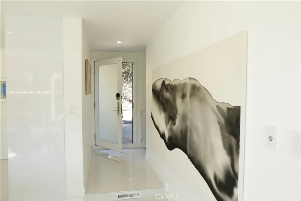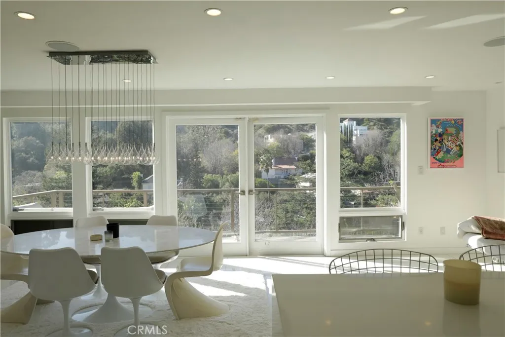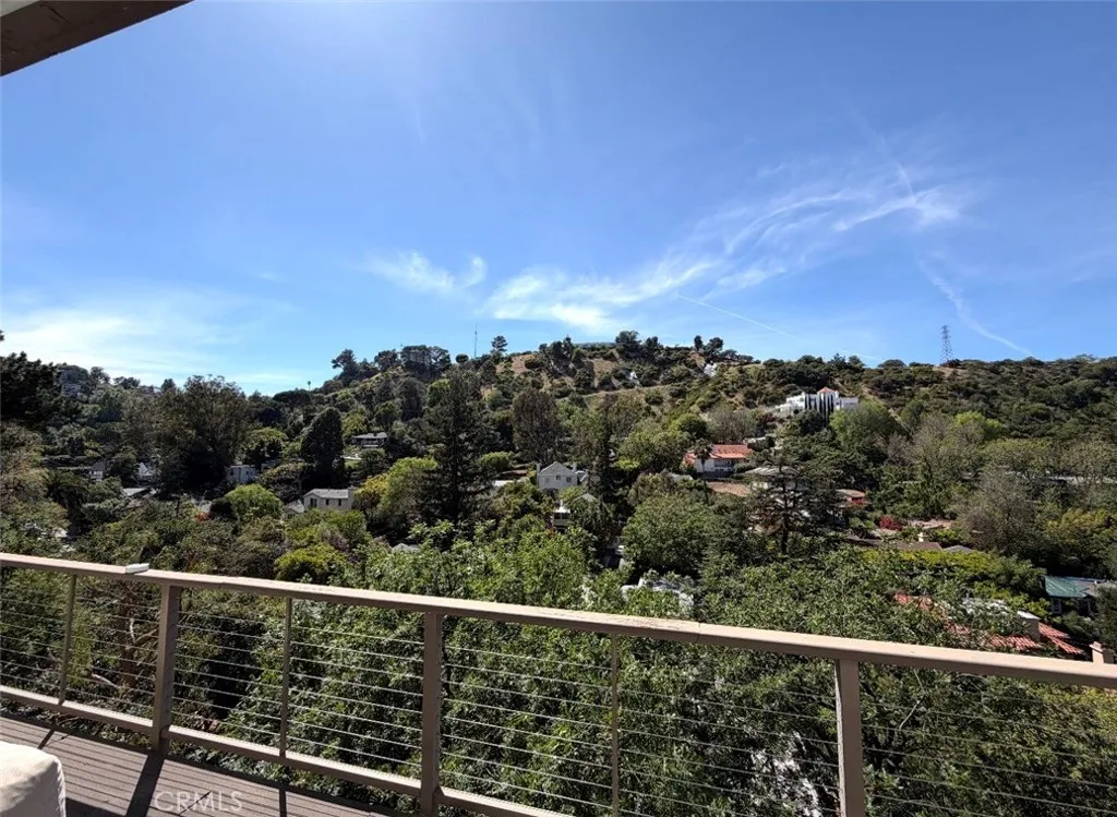 Perched above a serene, bucolic canyon with sweeping hillside views, This Gem in the hills is a striking blend of modern architecture and refined interior design. Behind its understated, austere facade lies a sophisticated, light-filled residence that evokes the feeling of a chic New York apartment reimagined for canyon living. Spanning three levels, the home offers dramatic living spaces with unobstructed vistas from nearly every room. The recently renovated main level showcases contemporary design at its finest, featuring Miele appliances, custom designer tile, and a stunning oversized center island that anchors the kitchen and doubles as a social hub. The open-concept living and dining areas flow seamlessly to an expansive entertainers deck, creating the perfect setting for indoor-outdoor living while overlooking the tranquil canyon below. With two bedrooms and two baths, this thoughtfully designed home delivers style, privacy, and a rare connection to natureall just moments from the energy of Los Angeles.