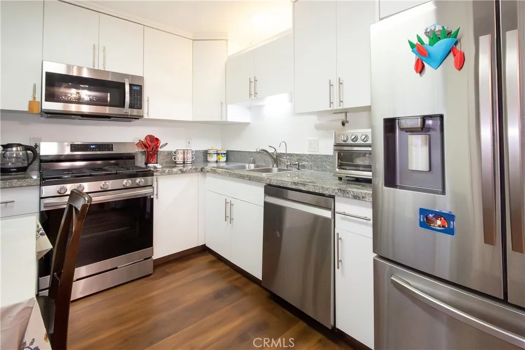 Welcome to this cozy , clean, bright, end-unit townhome in the highly sought-after Cabrini Villas hillside community! This beautiful and airy tri-level townhouse boasts private end views and direct access from the street. The spacious living and dining areas feature laminated floors and open to a large, private tiled patioperfect for relaxing or entertaining. The brand-new kitchen includes sleek granite countertops, soft-close cabinets, and stainless steel appliances. Upstairs, you'll find three well-sized bedrooms, including a master suite with a large walk -in closet, private balcony, and a fully remodeled en-suite bathroom. The two additional bedrooms share a stylishly updated bathroom. The lower level offers a secluded two-car garage with laundry area and a bonus room, ideal for an office or hobby space. Cabrini Villas offers resort-style amenities, including 7 swimming pools, 4 spas, 6 lighted tennis courts, basketball and volleyball courts, playgrounds, and a clubhouse, all within beautifully landscaped grounds. With easy access to freeways, shopping, dining, and entertainment. This quiet and desirable end-unit townhome is truly one of a kind. Don't miss out on this exceptional opportunity! It might be sold fully furnished! Ask if you interested