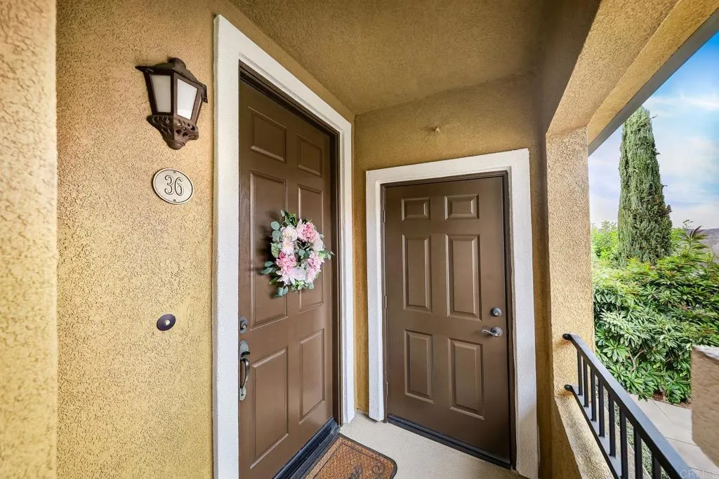 Welcome to 36 Via Sovana, a rare corner-unit gem in the highly sought-after Trevisio community of Santee. This bright, upstairs one-level home offers a spacious and functional floor plan featuring two bedrooms, two full baths, a generous living room, dining area, and an open kitchen with a full-size interior laundry room. The thoughtfully designed layout flows seamlessly from the living and dining spaces to the kitchen, creating an ideal setting for both daily living and entertaining. Additional highlights include plantation shutters, granite countertops, recessed lighting, panel interior doors, a GE appliance package, a brand-new water heater, and a new disposal. Fire sprinklers add peace of mind, while the private covered balcony with extra storage provides a perfect spot to relax and enjoy the natural light that floods the home. This desirable corner location offers enhanced privacy and features a garage plus a dedicated carport. Residents of Trevisio enjoy access to the community poolperfect for sunny San Diego days. Conveniently located near shopping, dining, parks, top-rated schools, and 52 and 125 freeways, this home provides effortless connectivity while retaining a peaceful neighborhood atmosphere. Outdoor enthusiasts will love being just minutes from Mission Trails Regional Park (walkable), Big Rock Park, Cowles Mountain, Santee Lakes, Grossmont College, and the Kumeyaay Lane Campground, with miles of hiking, biking, and nature trails nearby. Best of all, youre only about 14 miles from some of San Diegos most popular beaches. Dont miss this exceptional opportunity